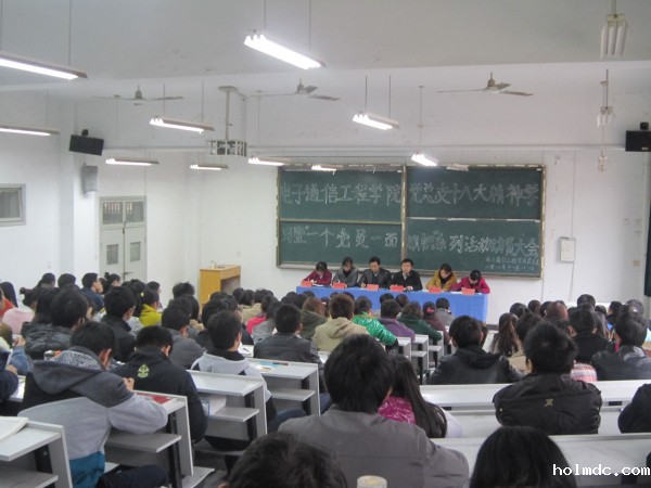11月21日中午,电子通信工程学院党总支在电子楼313召开了十八大报告精神学习暨“一个党员 一面旗帜”主题实践活动动员会,电院党总支全体师生党员参加了会议。会议由电院党总支副书记、副院长操宏华主持。